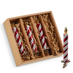 Raz Red And White Clip On Candle Glass Christmas Ornaments Box Of 4 4520883