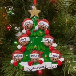 African American Christmas Tree Family Of 7 Personalized Christmas Ornament AA827-7
