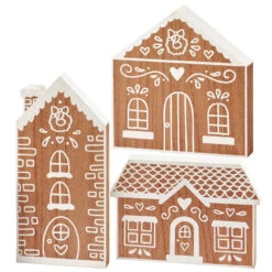 Primitives By Kathy Gingerbread House Chunky Sitter Set Of 3 Christmas Figures 119012
