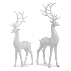 Raz 16.75″ Set Of 2 High Shine White Deer Christmas Figure 4512217