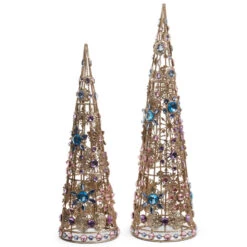 Raz 18″ Pastel Mix Brooch Jeweled Cone Christmas Tree Figures 4513509