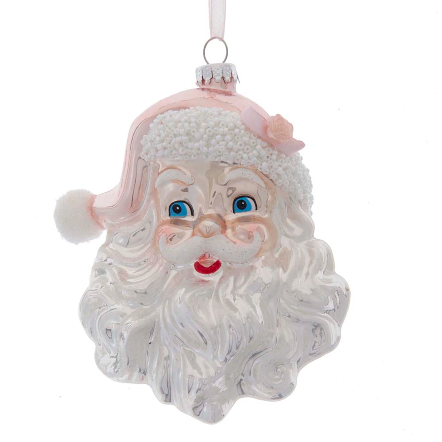 Kurt Adler 6″ Pink And Silver Santa Head Glass Christmas Ornament T2802