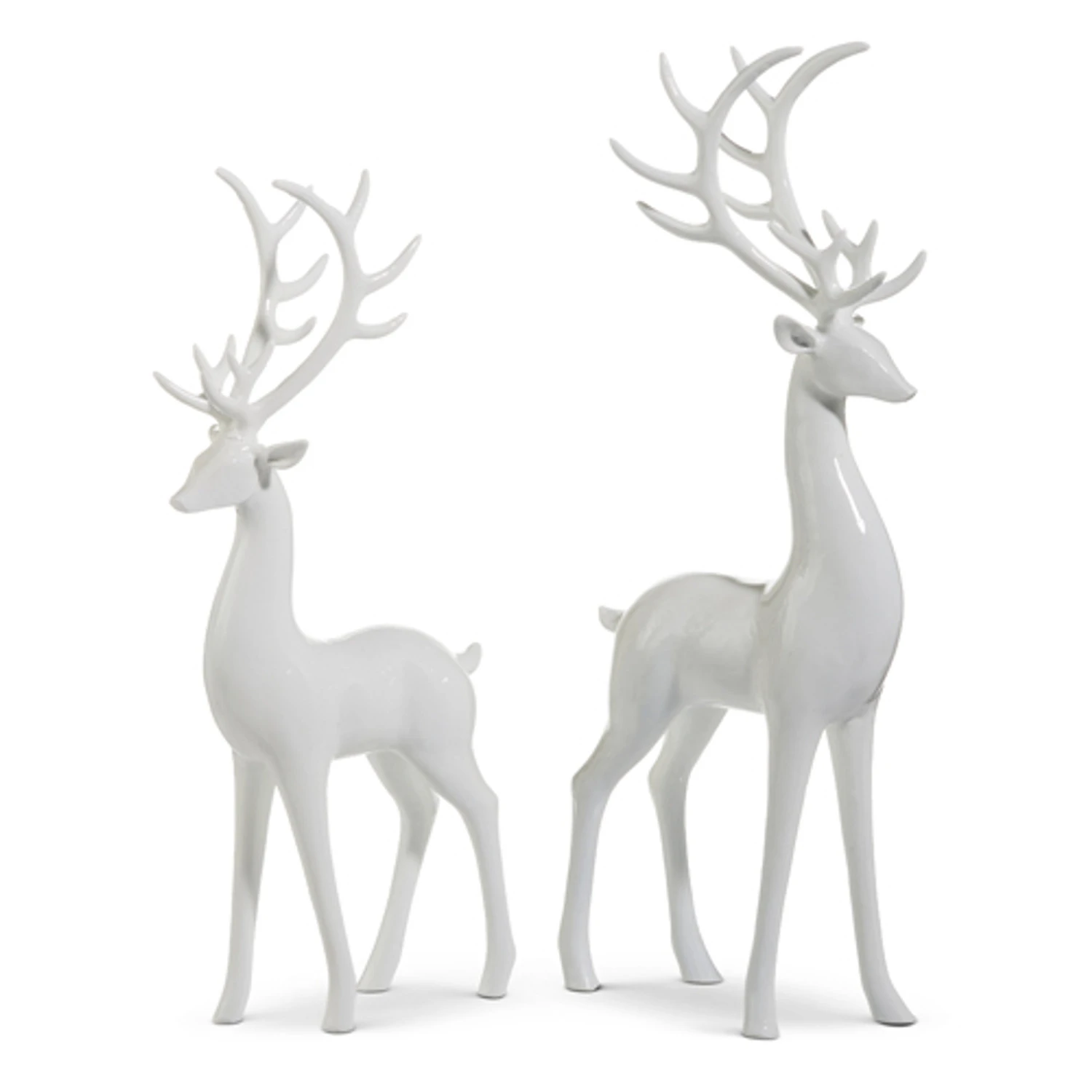 These high shine deer are going to look fabulous on your mantle next to your favorite decorative trees this holiday! Each one stands tall and has an elegant sleek appearance! Sold as a set of 2. Made by Raz Imports. Made of resin. Dimensions: 6.5″L X 4″W X 16.75″H; 6.5″L X 3.75″W X 14.5″H. Item #: 4512217