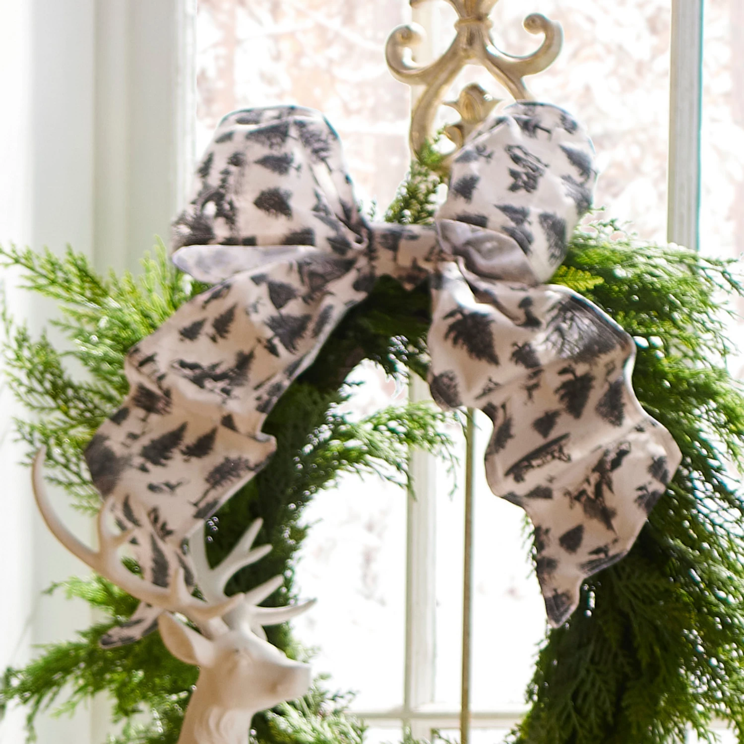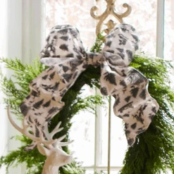 Over the meadow and into a gorgeous Christmas! Adorn your favorite wreath with a perfect bow! This bow features two large loops and long tails with a pattern of soft and dainty woodland life! It is great to save time on tying bows, just clip and DONE! Made by Raz Imports. Made of polyester. Dimensions: 14″ L X 1.5″ W X 18″ H. Item #: 4520948