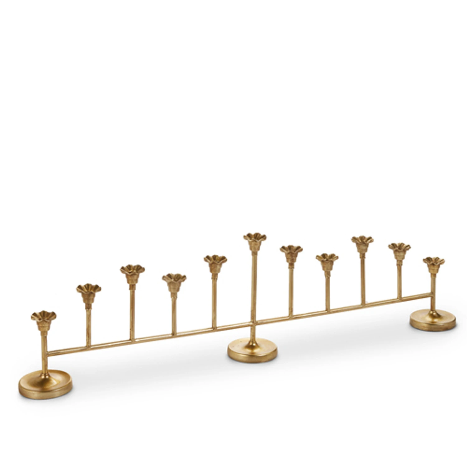 Make a grand statement with this large gold candelabra Christmas decoration. Measuring 28.75″ tall, it is designed to hold 11 taper candles, creating a warm and elegant glow. Perfect for displaying on a mantel alongside your favorite holiday houses or trees, it also makes a beautiful centerpiece for a dining table or sideboard, adding timeless sophistication to your seasonal décor. Use with battery operated flameless candles only. Made by Raz Imports. Made of metal. Dimensions: 28.75″ L X 3″ W X 8″ H. Item #: 4528027Â