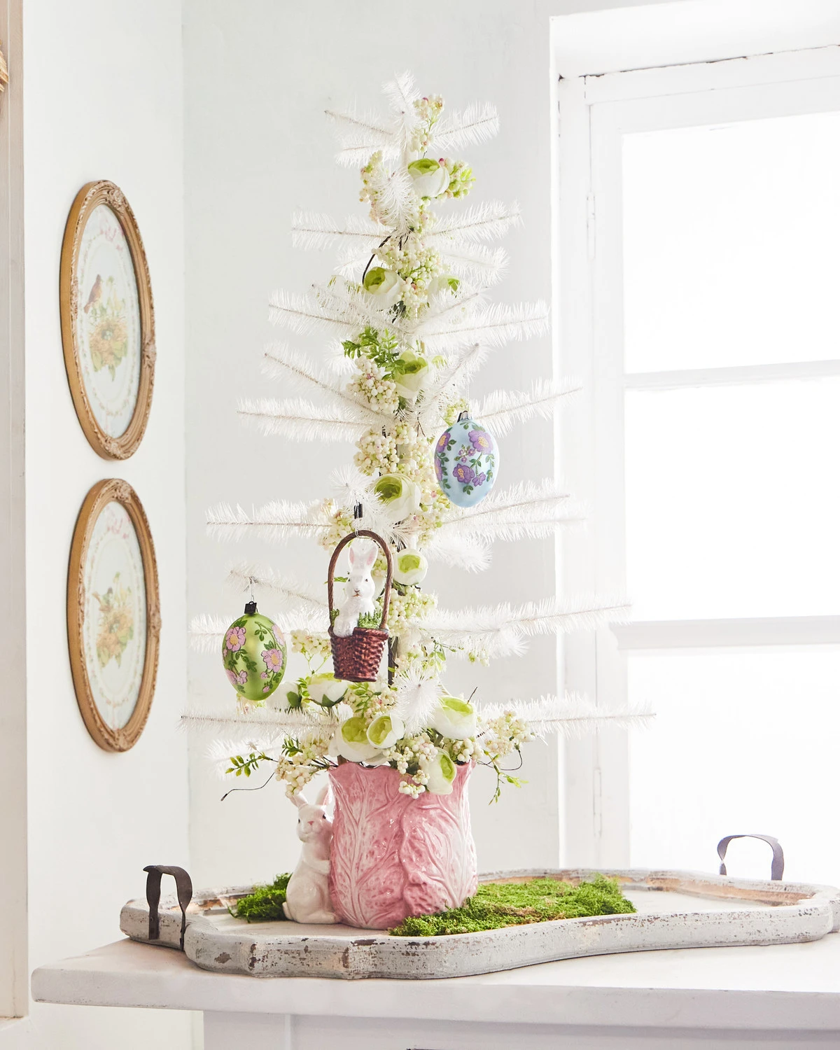 Who says decorating trees is just for Christmas?! Not us! This stunning tree is made of tiny, thin white feathers and is perfect to hang your Easter ornaments or special vintage garlands on! Use this for Easter, Valentines day, Christmas or any other holidays that you love! Made by Raz Imports. Made of feathers and wood. Dimensions: 21″ D X 36″ H. Item #: 4416056