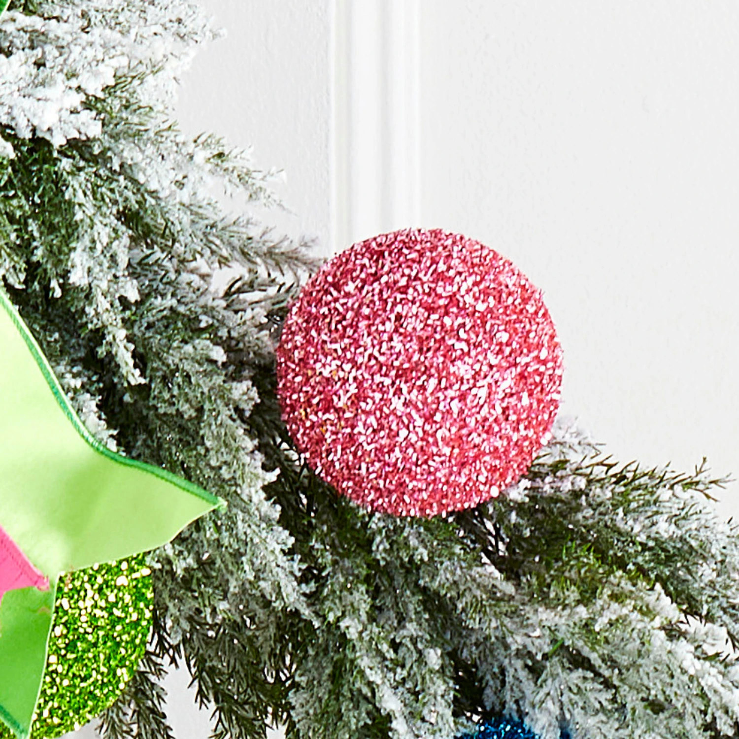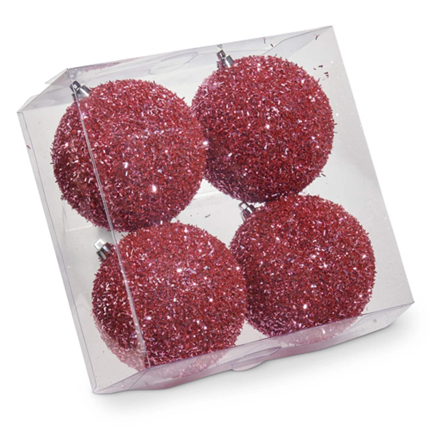 Pink is the new green and red! These stunning ornaments feature a set of 4 ball ornaments covered in sparkling tinsel glitter! Sold as a box of 4. Made by Raz Imports. Made of plastic. Dimensions: 4″. Item #: 4533500