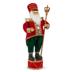 Inspired by vintage Christmas post cards, these buckets feature a red background with white polka dots and green stripes at the top! A blushing Santa with green mittens is on the larger cannister, while a smiling snowman wearing green mittens! They would look lovely with your favorite greenery or a glittering Christmas pick placed inside! Sold as a set of 2. Made by Raz Imports. Made of metal. Dimensions: 5.75″D X 9.5″H; 4.5″D X 8″H. Item #: 4411208