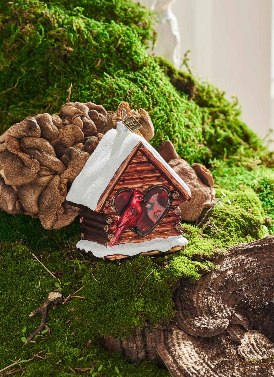It feels so good to come home to a warm loved one after a day being in the biting cold! This ornament features a cute little log cabin birdhouse topped with fresh fallen snow and a heart shaped door while a pair of cardinals say hello to one another! Made by Raz Imports. Made of glass. Dimensions: 3.25″ L X 2.75″ W X 4″ H. Item #: 4353113