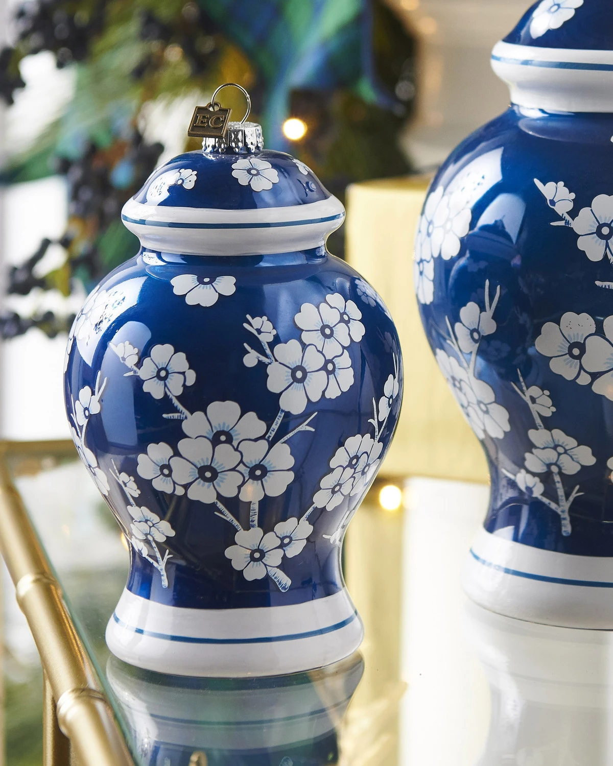 Raz Eric Cortina 6.5″ Blue Delft Ginger Jar Glass Christmas Ornament 4353182